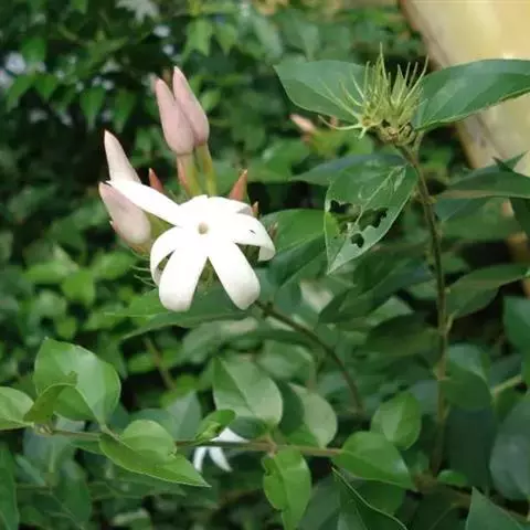 素馨花,木犀科素馨属多年生的攀援灌木植物。攀援灌木,小枝圆柱形,具棱或沟;叶对生,叶轴常具窄翼,…