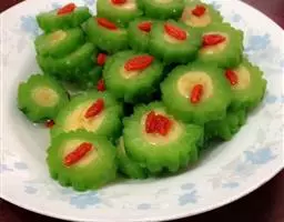 将苦瓜切成片,用开水烫一下或用食盐腌一会,将苦味去除一半,可清炒,或与素肉同炒。凉拌时先用盐开水浸泡,再切成丝,浇上酱油、麻油、醋、糖等佐料拌匀,放半个小时再吃。
