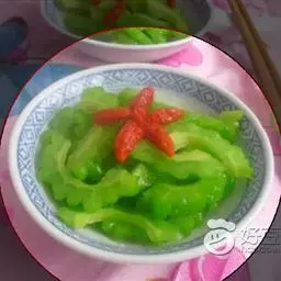 诀窍:用开水烫苦瓜的时间不要太长,保持苦瓜的脆劲为好。