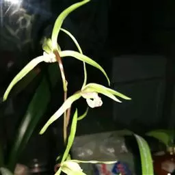 花葶从无叶的老假鳞茎基部发出,直立,长7—16厘米,基部有2—3枚膜质的圆筒状鞘,顶端通常具1花,偶见2花;