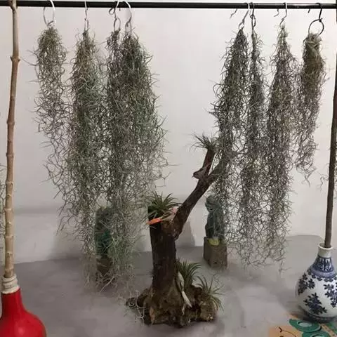 空气凤梨可黏附于枯木上,岩石上,或放置于贝壳上,盆器上,只要根部不积水均能生长。不少外国室内设计杂志,都有空气凤梨作为室内植物点缀家居,十分时尚。更多人大量种植空气凤梨,就用金属线或鱼线挂起来,造型生动奇特。空气凤梨的根部以附着植株于固定处的功能为主,所以即使没有根部亦可生存,折断或弄伤的枝干也能独立存活一段日子,若环境合适也能长出子株延命。