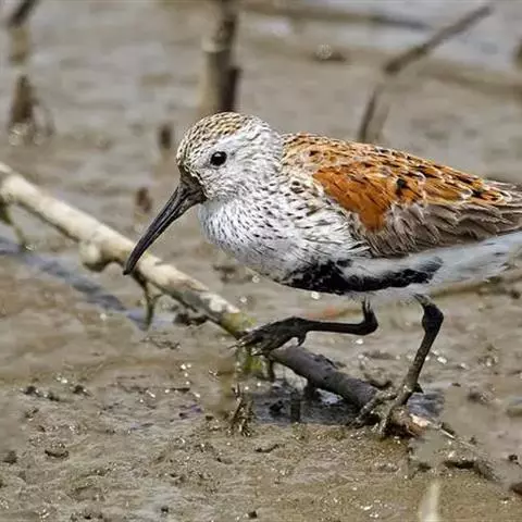 黑腹滨鹬是鹬科滨鹬属鸟类。小型涉禽,体长16-22厘米。嘴黑色、较长,尖端微向下弯曲,脚黑色。…