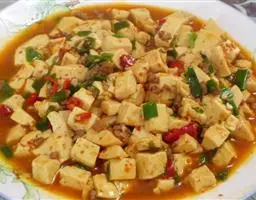 山珍豆腐是一道川菜,主料有豆腐,调料有大葱、姜、植物油、酱油、料酒。