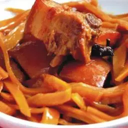 辣酱香豆腐就是将香豆腐放入骨汤或卤水中煮软,切成薄片后刷上辣酱,吃法有很多种,可以当休闲小吃,也可以当菜吃,或者作为火锅的底料,香味扑鼻,辣味十足,在长沙,吃香豆腐已经成了一种时尚。卖香豆腐的小店遍布大街小巷。