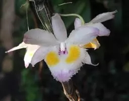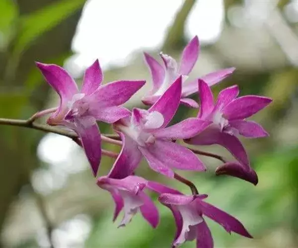 美花石斛是兰科石斛属多年生草本。茎柔弱,斜立或下垂,呈细圆柱形,有时分枝;叶互生于茎上,…