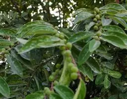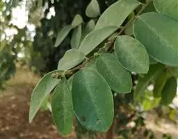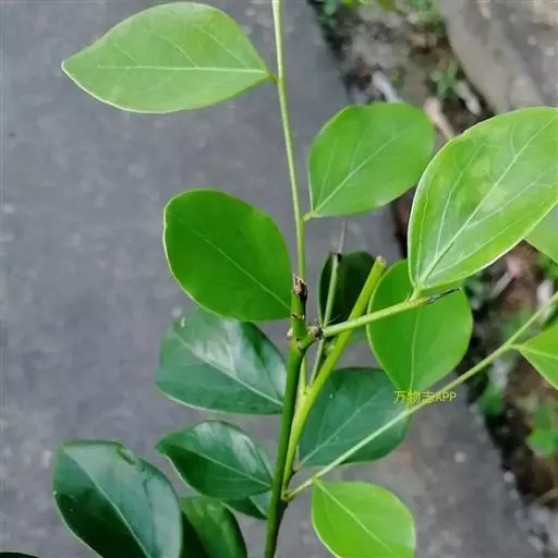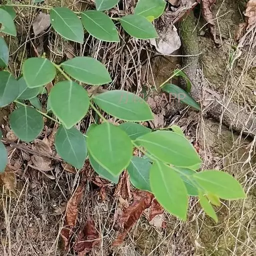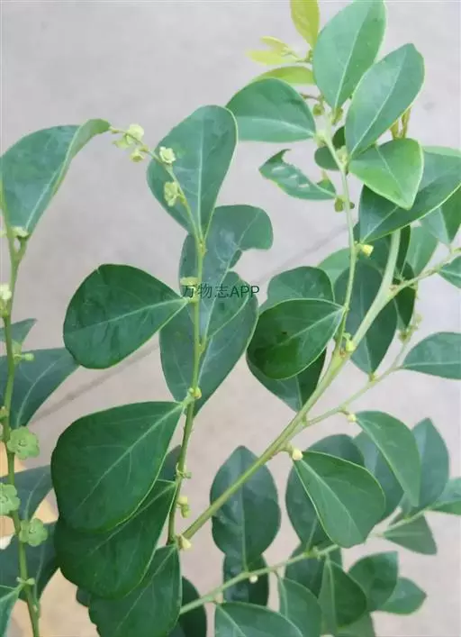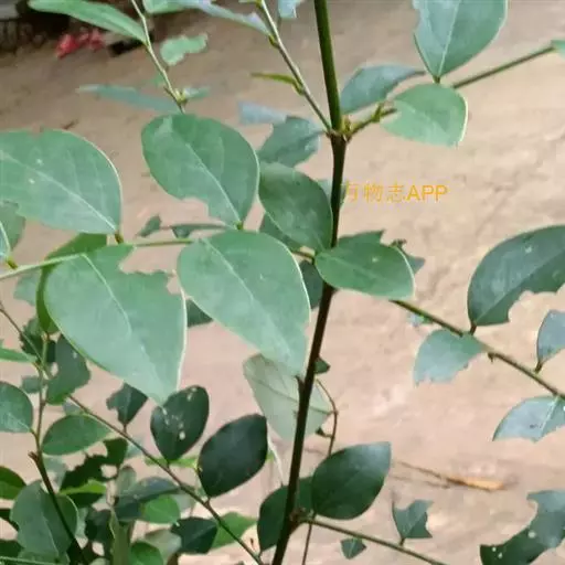 枝常呈紫红色,小枝灰绿色,无毛。叶互生,单叶,具短柄;叶片革质,卵形或宽卵形,长3—6厘米,宽2—3.5厘米,端钝或急尖,全缘,上面有虫蚀斑纹,下面灰白色,具细点,托叶三角状披针形。枝及叶干后变为黑色。气微,味淡微涩。