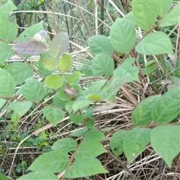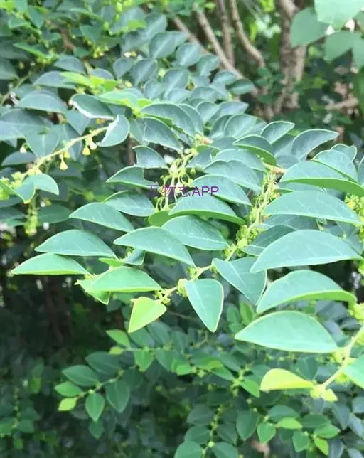 叶:卵形至卵状披针形,长2.5-4厘米,两端均钝,。上面深绿色,秃净,背面粉绿。