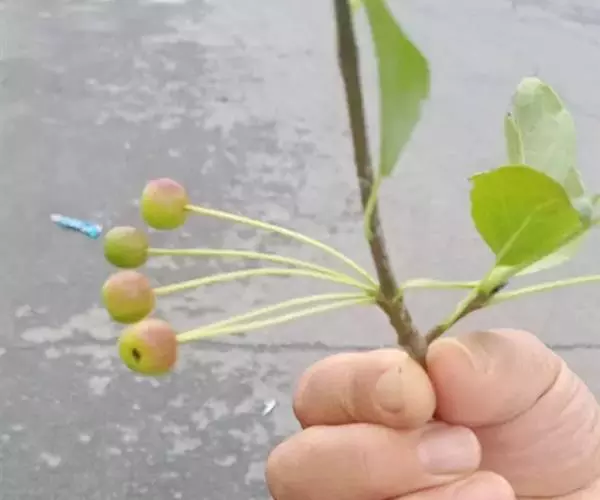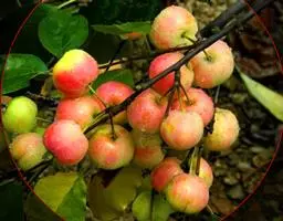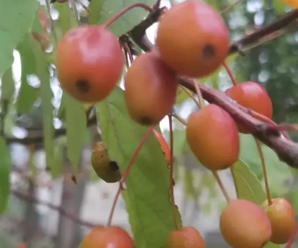 西藏昌都地区的山荆子,果实有长椭圆形、倒卵圆形或圆柱形3个类型,单果重1.25克,鲜红色,脱萼,有光泽,果柄长1.9~3.9厘米,紫红色,9月下旬成熟。