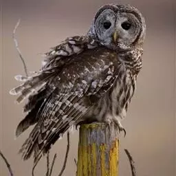灰林鸮是鸱鸮科、林鸮属鸟类。体长约40厘米;头大而圆,没有耳羽,面盘明显,橙棕色或黑褐色;上体暗灰色,…