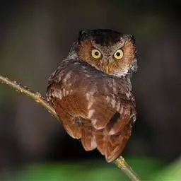 黄嘴角鸮:小型鸟类,体长18-21厘米。的茶黄褐色角鸮。眼黄色,嘴奶油色,特征为无明显的纵纹或横斑,…
