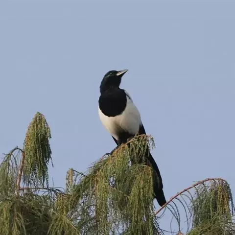 灰喜鹊:属雀形目、鸦科的中型鸟类。外形酷似喜鹊,但稍小。体长33-40厘米。嘴、脚黑色,额至后颈黑…