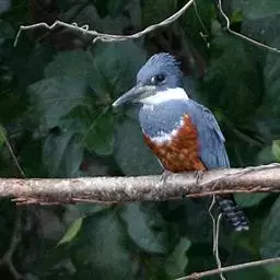 白腹鱼狗(学名:Ceryle alcyon)是佛法僧目翠鸟科的鸟类。前额和头顶部是深蓝色羽毛,底部和分尾完全是白色的,或多或少有浅黄色或黄色。生活在不同类型的水生境。湖泊、山涧、海岸、红树林、海湾、沼泽、河流、水库和平静的海面。主要食物包括鱼,大多是鳟鱼,杜父鱼和大西洋鲑鱼,通常消耗小鱼。