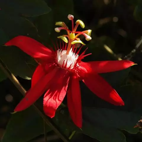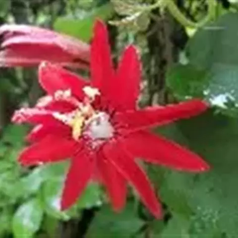 红花西番莲 是西番莲科、西番莲属多年生草质藤本,茎圆形,具卷须,长6-8米。叶互生,长圆形至长卵形,…