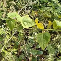 粗状草质藤本,长10-15米,无毛;幼茎四棱形,常具窄翅。叶膜质,宽卵形至近圆形,长7-13厘米,宽5-15厘米,先端急尖,基部圆形,全缘,无毛,侧脉8-12对,网脉疏散,明显可见;叶柄长3-5厘米,具2-3对杯状腺体;托叶大形,长2-4厘米,卵状披针形,顶端急尖,边缘具细齿。