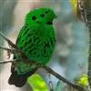 三宝鸟(学名:Eurystomus orientalis)为佛法僧目三宝鸟属下的一种中小型攀禽,共有10个亚种,体长26-29厘米,体重107-194克。通体蓝绿色,头和翅较暗,呈黑褐色,初级飞羽基部具淡蓝色斑,飞翔时甚明显。虹膜暗褐色,嘴、脚红色。常长时间地站在林缘路边高大乔木顶端枯枝上,或在空中成圈飞翔和上下飞翔,边飞边“嘎嘎”地鸣叫。 如发现飞行中昆虫,则追赶捕食,如果在地上发现蜥蝪或昆虫,则如伯劳采饵,在地上以跳跃代步行捕食。