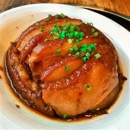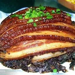 梅菜扣肉,汉族传统名菜,属客家菜 。制作材料有五花肉、梅菜、葱白、姜片等。