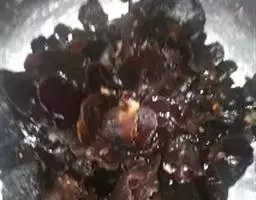 3. 锅中放比平常炒菜多一点的油,放几粒麻椒和干辣椒,再放一勺豆豉酱,最后放火锅 底料,多少根据自己吃辣的程度放就可以.