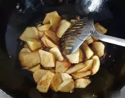5.土豆片:同样煎制双面焦黄后盛起。