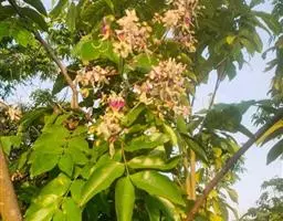 香槐是豆科香槐属乔木。其叶互生,卵形或长圆状卵形,顶生小叶较大,有时倒卵形,先端急尖,基部宽楔形,…