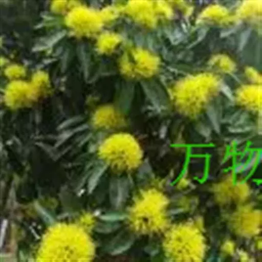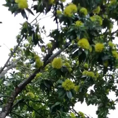 花初开时黄绿色,随着开花时间延长,转为黄色,凋谢时为金黄色,其鲜黄色的小花聚生在枝条的顶端,排成伞房花序,整团花序远观有如绒球,远看仿佛一个个憨态可掬的熊猫脸,故称为“金黄熊猫”,是花色特殊的珍奇花木。树形优美,木质坚硬,适宜作园景树木、行道树以及房前屋后等非规划林地造林,幼株可盆栽,具有较高的绿化景观和经济开发价值。