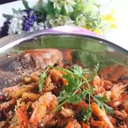 银丝顺风虾是一道美食,主要食料有活基围虾、粉丝等。