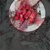3、取出蒸熟的虾,撒上青红椒粒,浇上烧热的油即可。