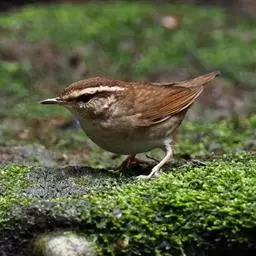 强脚树莺(学名:Horornis fortipes):体长9-13厘米,小型鸟类,是一种暗褐色树莺。具形长的皮黄色眉纹,上体概呈橄榄褐色,两侧淡棕色,下体偏白而染褐黄。与日本树莺相似,但跗跖长一般不及23毫米。虹膜褐色或淡褐色;嘴褐色,上嘴有的黑褐色,下嘴基部黄色或暗肉色;脚肉色或淡棕色。