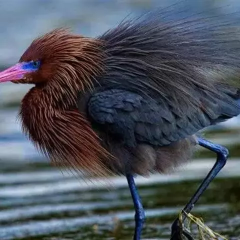 大蓝鹭是鹳形目鹭科的鸟类。共有5个亚种,体长137厘米。全身大部分羽毛呈灰蓝色羽毛,…