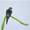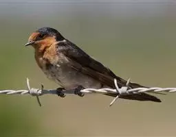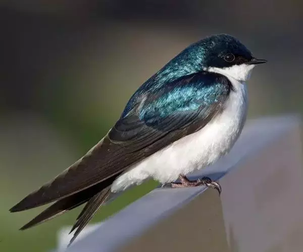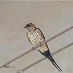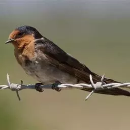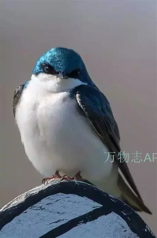 线尾燕,腹部接近纯白色,背部则为深紫色,头部的羽毛是栗色的。