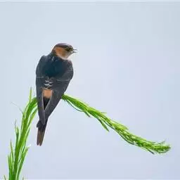 金腰燕:体长16-18厘米,体重18-21克,寿命15年。上体黑色,具有辉蓝色光泽,腰部栗色,…