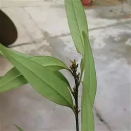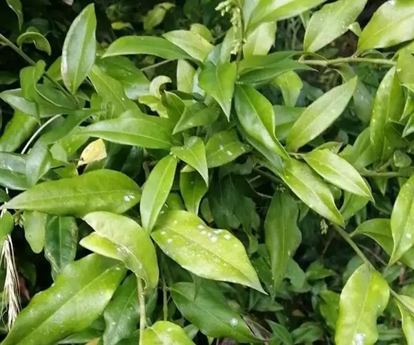 叶阔椭回状卵形、卵形、椭圆状披针形、披针形或狭披针形,较小的长2-3厘米,宽7-12毫米,较狭的长4-7厘米,宽7-14毫米,较大的长6-7厘米,宽2.5-3厘米,变化很大,但常见的为卵形或椭圆状披针形,长3.5-5.5厘米,宽1-2.5厘米。先端急尖或渐尖,兹部急尖或渐狭或圆,一般中部或中部以下较宽,叶面亮绿,叶背淡绿,叶面中脉凸出,无毛,稀被微细毛,大多数中脉近基部有一对互生或对生的侧脉,多少成离基三出脉(四川峨眉山所产植株,干后叶面全部侧脉隆起,且有明显的离基三出脉),叶背中脉稍平或凸出,无毛,全面平滑,侧脉不显;叶柄长3-6毫米。