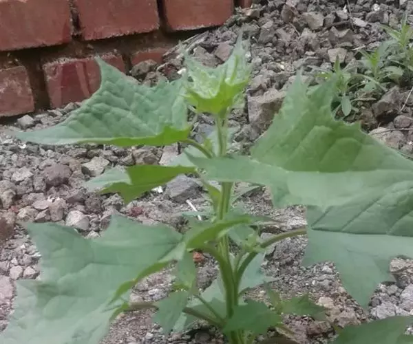 2、叶。叶宽卵形至卵状三角形,两面均呈亮绿色,基部圆形、截形或略呈心形,边缘掌状浅裂,轮廓略呈五角形;上部叶较小,多呈三角状戟形。