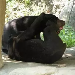 美洲黑熊(学名:Ursus americanus):属大型熊类,体型硕大,四肢粗短。它们的体长120-220厘米,公熊比母熊大很多。它们的体色有很多种,东北部的美洲黑熊颜色偏深,以黑色为多;生活在西北部的颜色则偏浅,毛色有棕色、浅棕、金色;生活在加拿大不列颠哥伦比亚省中岸的黑熊甚至有奶白色的个体,被称为“白灵熊”;阿拉斯加的美洲黑熊则有蓝灰色体毛的成员,因此也被人称为“冰河熊”。
