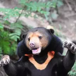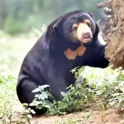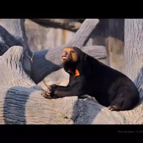马来熊,是食肉目熊科马来熊属哺乳动物。体胖颈短,眼睛和耳朵小;头部短圆;全身乌黑光滑;鼻唇周为棕黄色,…