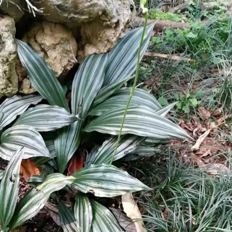 银带虾脊兰:植株无明显的根状茎。假鳞茎粗短,近圆锥形,粗约1.5厘米,具2-3枚鞘和3-7枚在花期…