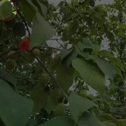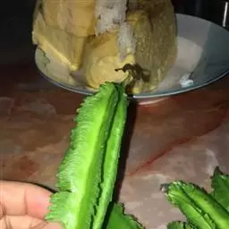 荚果近圆形或椭圆形,长7-10厘米,宽4-6厘米,顶端鸟喙状,外面光滑无刺;种子2-5颗,黑色,扁圆形。花期5-6月;果期8-9月。
