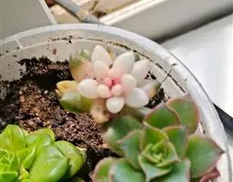 与桃美人易混淆的多肉品种有星美人、桃之卵。尽管它们的色泽、形态都与桃美人近似,但还是有不同之处的。