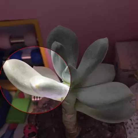 另外,在同样光照充足的养护条件下,桃之卵的叶片颜色比桃美人鲜艳。桃之卵成体的叶片比桃美人成体的更小且偏圆。此外,桃美人的叶片先端有时具凸起的小尖,而桃之卵则不会出现这种情况。