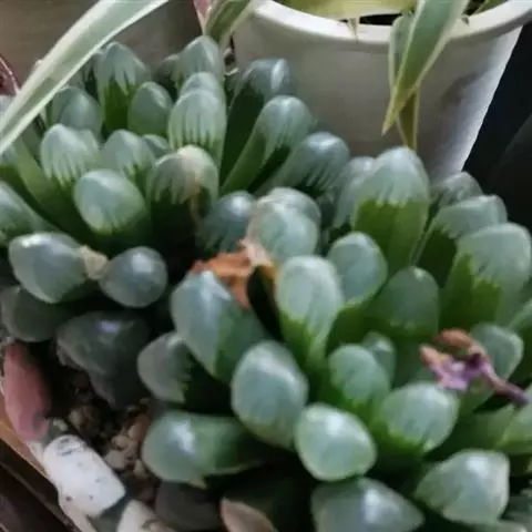 二者主要靠颜色区分。星美人无论在何种养护条件下,叶片都是白色或者淡蓝绿色。而桃美人的叶片颜色可以晒成淡紫或者淡粉色。