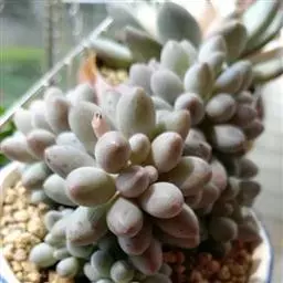 桃美人(Pachyphytum ‘Blue Haze’)是隶属于景天科、厚叶草属的多年生植物,多肉植物。是由月美人和稻田姬杂交而来的园艺品种。