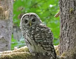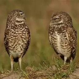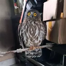 鸺鶹,全长145-170毫米,羽毛棕褐色,有横斑,尾巴黑褐色,腿部白色,爪子比较锋利。外形像鸱鸺,俗称小猫头鹰,但头上没有角状的羽毛。喜欢捕食老鼠、兔子等,对农业有益,为夜行性动物,少数时间白天也活动。属国家二级保护动物。