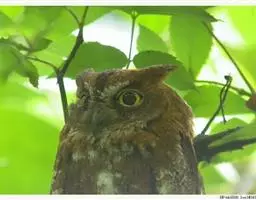 鬼鸮是鸟纲鸱鸮科的鸟类, 全长23-26厘米。共有6个亚种。雌雄羽色相同。额、头顶及枕部褐色,…