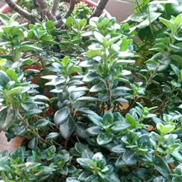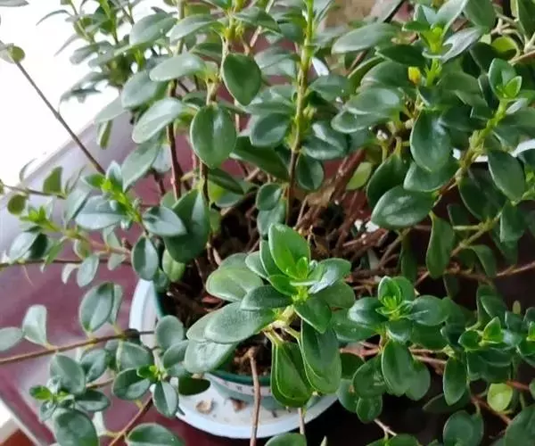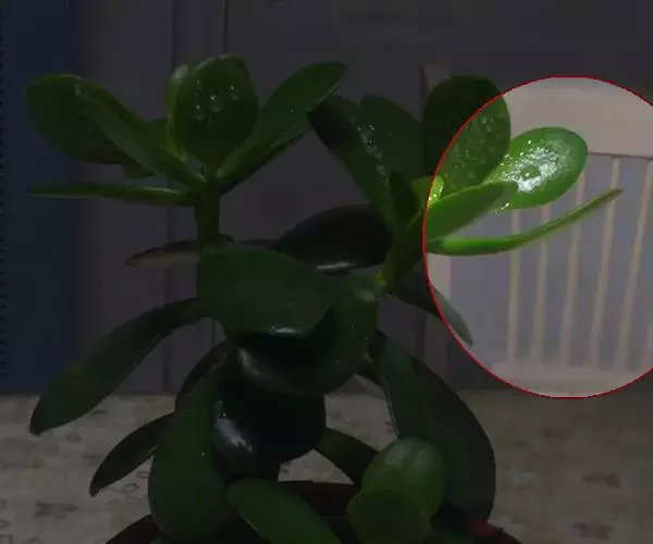 茎斜升,长20~40㎝,嫩茎绿色,老茎红褐色; 单叶,对生,卵形,长约3~4㎝,先端尖,肉质,叶面浓绿色,背面靠主脉处红色.