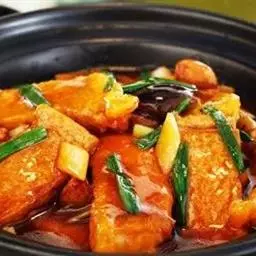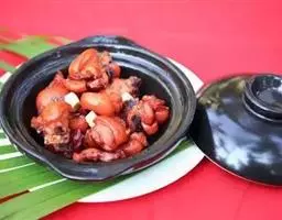 肉蟹煲又名缅甸肉蟹、缅甸黑蟹、缅甸石蟹,是一道由肉蟹、鸡爪、辣酱做成的美食。肉蟹原产于缅甸、孟加拉一带海中,味道鲜、嫩,蟹肉味浓香。可与生姜搭配来降低寒气。