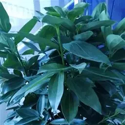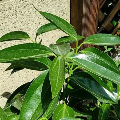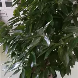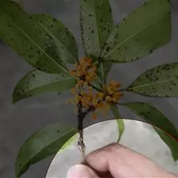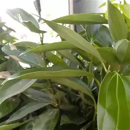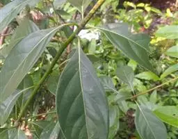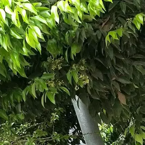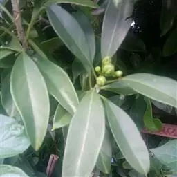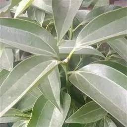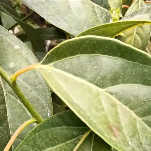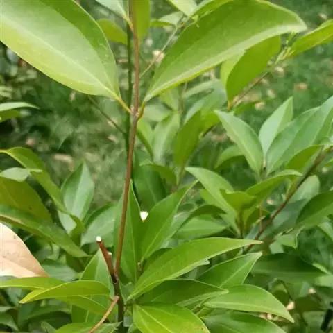 3、细叶香桂,常绿高大乔木。树皮灰色,小枝密生绢状毛。叶在新枝对生,在老枝互生,革质,卵状椭圆形至披针形,长4-14cm,宽1-6cm,先端长渐尖,基部楔形,全缘,上面绿色,有光泽,下面密生绢状短柔毛,具离基3出脉,在背面显着隆起。圆锥花序腋生;总花梗和花梗密生白色短柔毛;花淡黄色,花被6裂,基部筒状;雄蕊、雌蕊与前种相似。浆果椭圆形,基部具宿存萼筒,全缘。花期5-6月。果期6-12月。