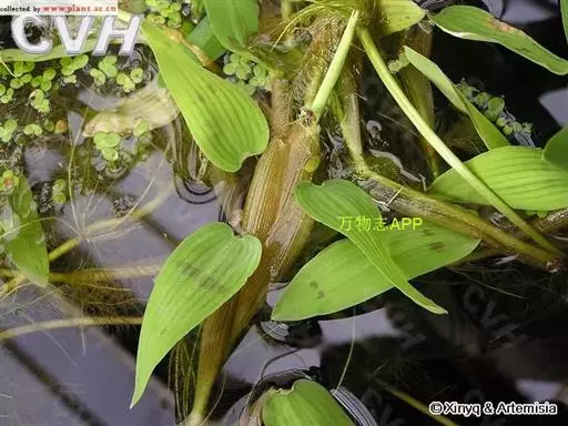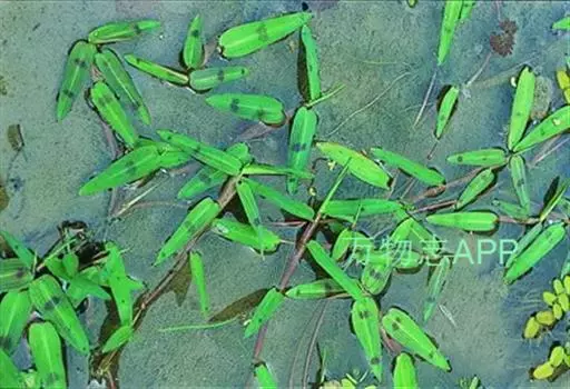 水生漂浮草本;根状茎细长,节上生羽状须根。茎露出水面的部分长约20厘米。叶鞘膨胀,具横脉;叶舌膜质,长约0.5毫米;叶片卵状披针形,长3—8厘米,宽1—2厘米,下面具小乳状突起,顶端钝,基部圆形,具短柄。