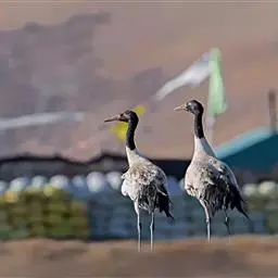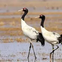 黑颈鹤:是鹤科、鹤属的大型涉禽,体长110-120厘米,体重4-6千克。颈、脚甚长,通体羽毛灰白色,…
