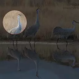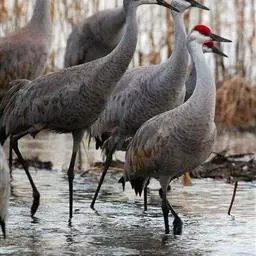 灰鹤 栖息于开阔平原、草地、沼泽、河滩、旷野、湖泊以及农田地带;其中尤为喜欢以富有水边植物的开阔湖泊和沼泽地带。常栖息于沼泽草甸,沼泽中多草丘和水洼地,水生植物有水麦冬、水毛茛和薹草等20多种;在中国黑龙江省林甸县灰鹤栖息在芦苇沼泽,有芦苇、狭叶甜茅、菰、小猩藻等植物;在迁徙途中的停歇地和越冬地,主要栖息在河流、湖泊、水库或海岸附近,常到农田中觅食,回到河漫滩、沼泽地或海滩夜宿,例如,在山西省河津县黄河滩越冬的灰鹤,白天主要在作物地中觅食休息,以花生地中最多,夜间在距河岸1-2千米处四面环水的沙滩或荒草丛生的小岛上过夜,但从未见到灰鹤在耕地内集群过夜。