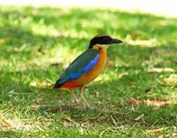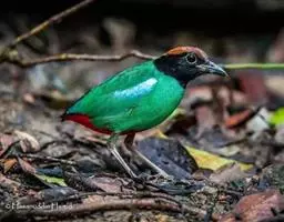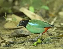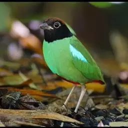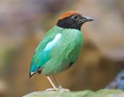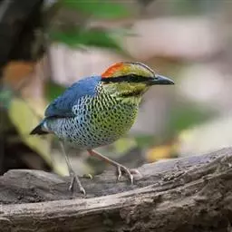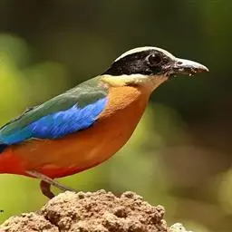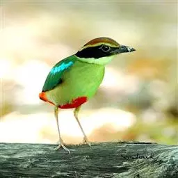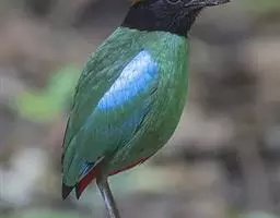 蓝翅八色鸫(学名:Pitta brachyura)是雀形目八色鸫科的鸟类。体长17-20厘米,体重类约48-70克,体型圆胖,尾短,腿长,以身体具有红、绿、蓝、白、黑、黄、褐、栗等鲜艳夺目,丰富艳丽的色彩而得名,是很有观赏价值的鸟类。主要栖息于海拔200 米以下的平坝和丘陵落叶很厚的各种类型的树林中,也见于林缘溪流边的灌丛和小树上,田坝区的榕树和村寨边的小树上,以及竹林等环境。常在森林底层或低植被中找食无脊椎动物。叫声简单哀婉。主要以甲虫、白蚁、鳞翅目、鞘翅目的昆虫和蚯蚓、蜈蚣等小动物为食。分布于中国西南部、东南亚;越冬于马来半岛、苏门答腊及婆罗洲。