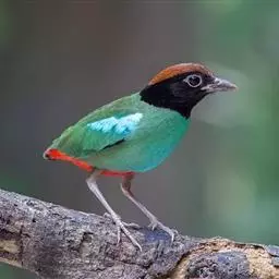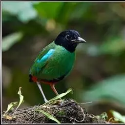 蓝翅八色鸫多见10-20只在树冠下结群静栖,或在相近的树枝上活动。喜低地灌木丛及次生林。在地面跳动似鸫鸟。多在林下荫湿处活动,是该科鸟类中分布最广的一种。在中国属夏候鸟,秋末经沿海一带迁飞至南部热带越冬。鸟鸣声是响亮清晰的笛音“tae-laew、tae-laew”,持续不到1分钟;告警时叫声为粗哑的“skyeew”声。